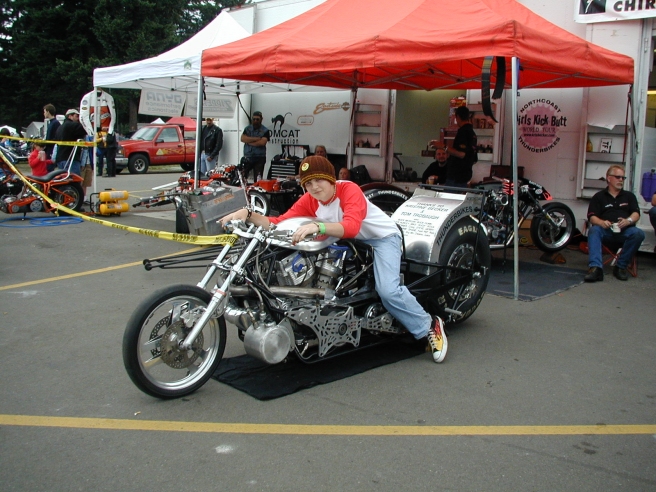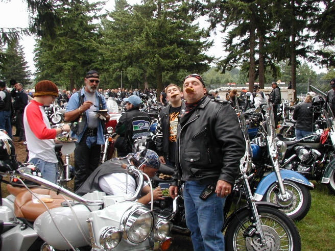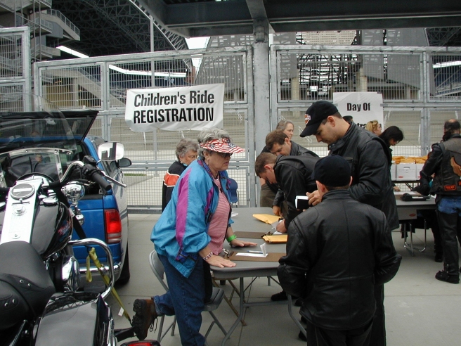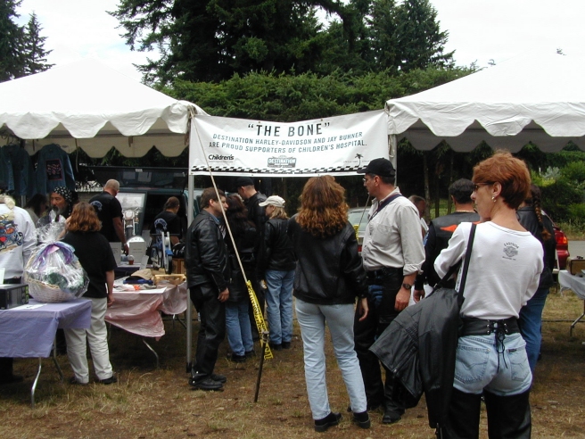 A record-breaking 1200-plus bikers turned out for the Children's Ride benefit for Children's Hospital in Seattle on June 30, 2002. For the seventh year, the biker community came together to raise money for a good cause, to ride through the foothills, and to see the All Harley Drag races. By the end of the day, over 800 motorcycles and 1,200 participants had ridden the 48-mile run, eaten smoked salmon and smoke chicken, voted on the show bikes, watched the races, and given over $194,000 to the Hospital.