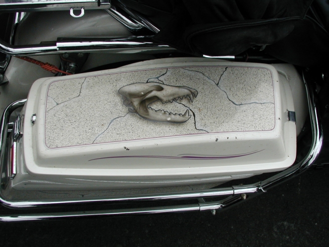 We landed at the racetrack to be greeted by the enticing aroma of smoking salmon and chicken. The food line quickly formed, and the caterers were prepared to handle an army of hungry riders. Loewll-Hunt catering, sponsors of the ride, provided an excellent lunch. As soon as we were finished eating, I wandered around to greet friends again and find out where the bike show was staged.