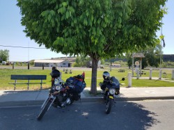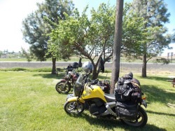 5: After miles of sun, we found a side road with shade to stop for a drink of water.